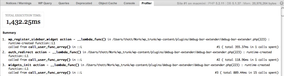 This plugin requires the debug-bar plugin >0.5 and a developers’ brain to work correctly.
